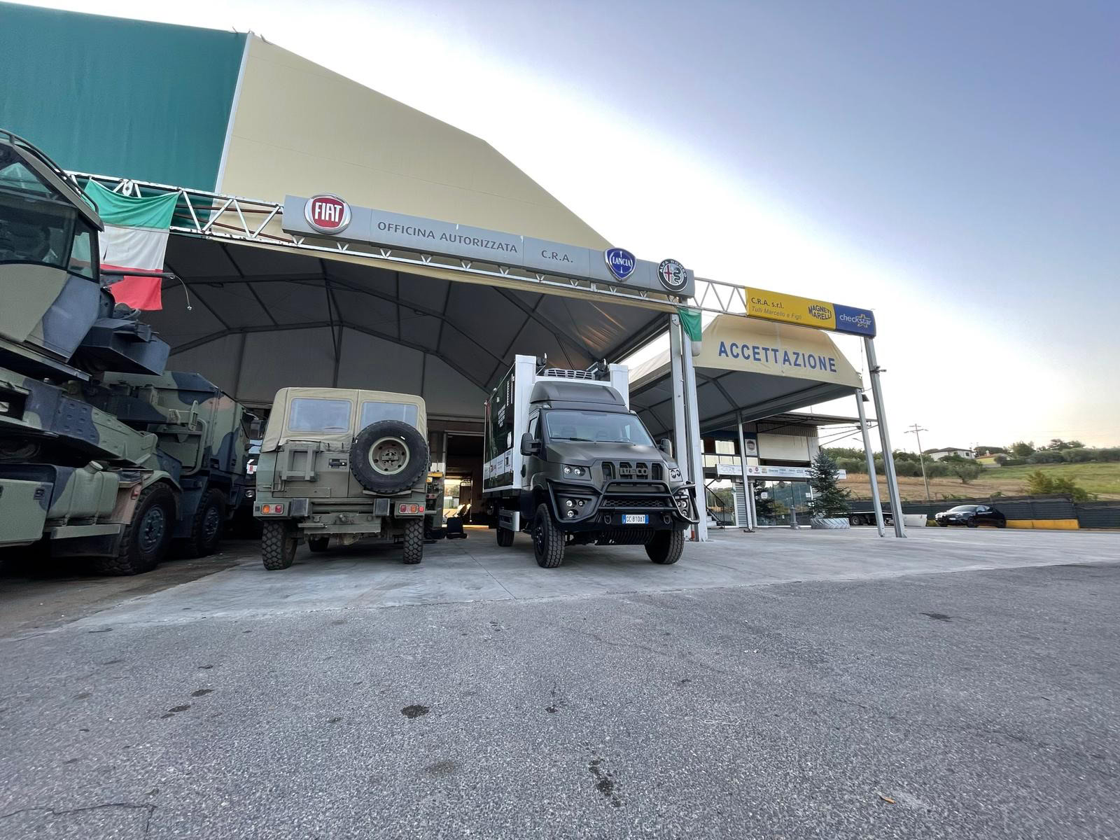 La nostra officina nasce negli anni 70; oggi è un'azienda sita su uno spazio recintato e video sorvegliato di circa 1600 m² (officina meccanica e carrozzeria) dalle connotazioni moderne e dinamiche definite da professionalità ed attrezzatura all'avanguardia: forni di verniciatura per mezzi leggeri e pesanti, attrezzature per la riparazione di mezzi leggeri, pesanti, attrezzatura per la costruzione di tubi olio idraulico, ganasce freno, frizioni di veicoli anche fuori produzione, attrezzatura per la sostituzione dei pneumatici vetture, veicoli pesanti e blindati.