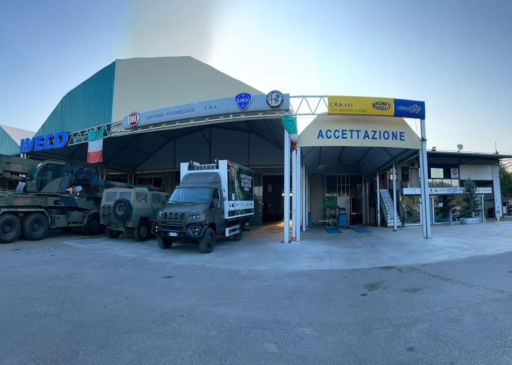 L’officina meccanica dispone di 3 ponti sollevatori fino a 3500 kg, un ponte fino ad 8000 kg e di sollevatori a colonne mobili per autocarri!
